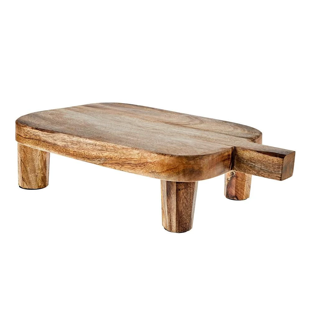 This small wooden plate is perfect for serving your guests or can be used as a riser for home decor.
