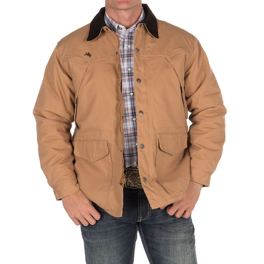 Update your look around the ranch this season with this classically styled tan ranch coat from Wyoming Traders.